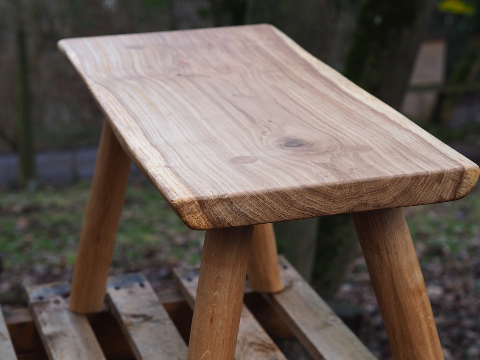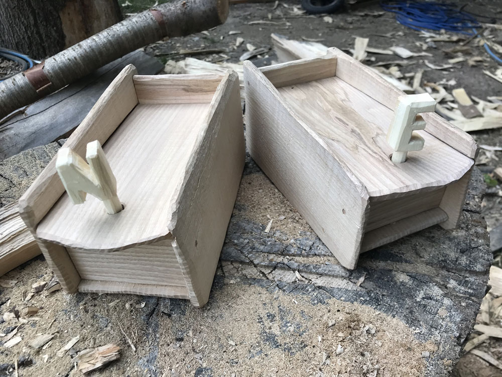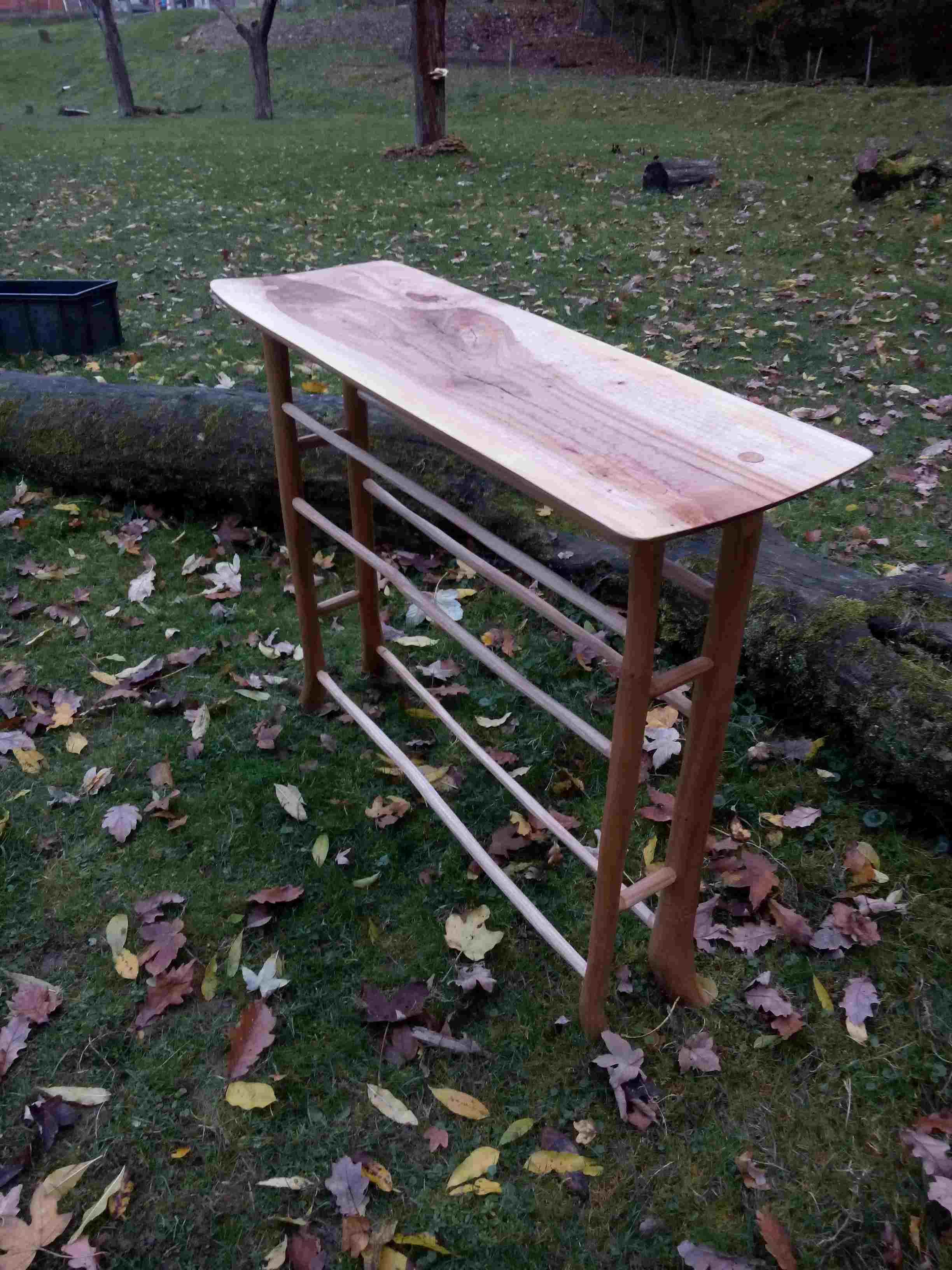 Ich verarbeite sowohl Grünholz als auch abgelagertes Holz aus eigenem Bestand oder auch aus Ihrem Garten oder Wald. Grundsätzlich sind die alle bisher verwendeten Hölzer aus dem süddeutschen Raum und wurden in liebevoller Handarbeit aufgearbeitet.